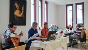 Anschließend eröffnete Seniorenkreisleiterin Barbara Eibauer den besinnlichen Teil des Nachmittags, musikalisch begleitet von der Instrumentalgruppe um Frau Schenk, Frau Steininger und Frau Ostermeier. Aus den bereitgelegten Liedblättern wurden besinnliche Lieder angestimmt. Dazwischen trugen Frau Eibauer und ihr Team (Frau Maria Knott, Frau Elfriede Weber und Frau Maria Sigl vom Sachausschuss Caritas) berührende Geschichten zum Nachdenken vor.