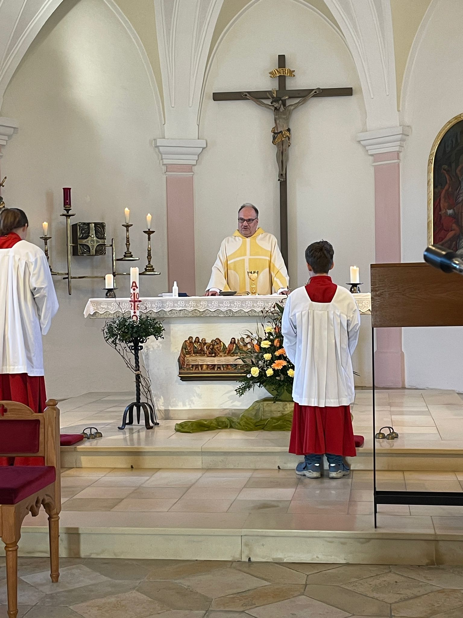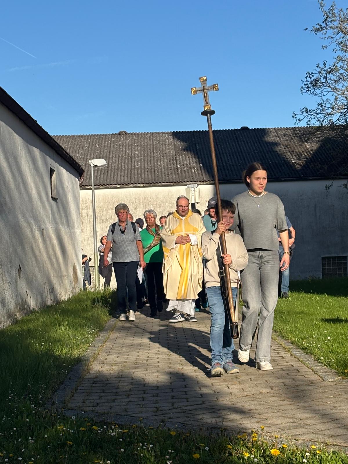 Am Markustag, zugleich Vorabend zum „Guten-Hirten- Sonntag“ brachen zahlreiche Gläubige der Pfarrei Ittling auf zum Bittgang nach Amselfing. Die Flurprozession führte erstmals über Ödmühle zur Ittlinger Filialkirche St. Stephanus. Als Vorbeter wirkten Theodor Huber und Marie Luise Bachl. Um das Tragen von Kreuz und Lautsprecher kümmerten sich die Ministranten Maxi, Antonia, Leo sowie Jannick, ein Gast aus Wörth/Donau. Eine große Hilfe war die Absicherung der Prozession durch die Freiwillige Feuerwehr Amselfing. Nach der Bittmesse, zelebriert von Pfarrer Stefan Altschäffel und von Organistin Karin Gänger begleitet an der Orgel, durften die Teilnehmer noch einkehren auf dem Hof von Familie Rudolf und Claudia Holzapfel, wo sie bestens versorgt wurden mit Brotzeit und Getränken. Um den Rücktransport der Teilnehmer nach Ittling kümmerten sich die Pfarrgemeinderäte.